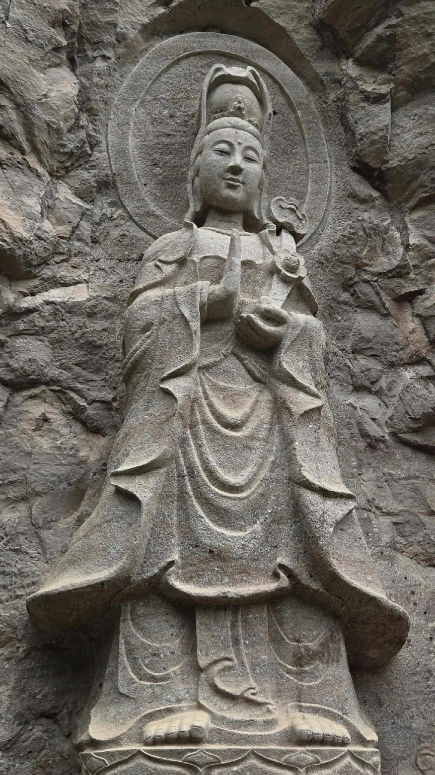 最終“好漢”和“懶漢”在“天成禪院”匯聚,大家駐足仰望崖壁懸空的千年觀音像,感受“極目皆圖畫”的壯闊。