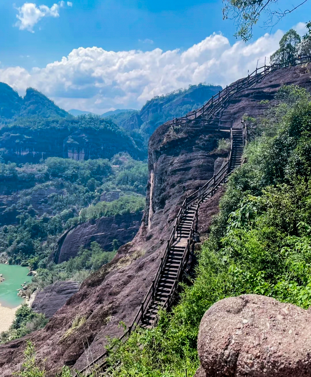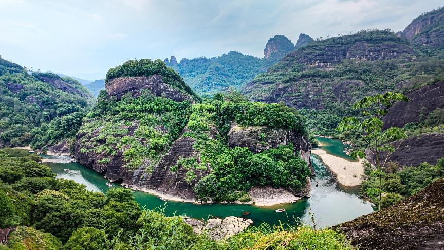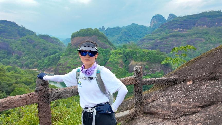 當大家成功登頂,極目遠眺,映入眼簾的是九曲溪如玉帶環(huán)繞群峰,風景美不勝收。