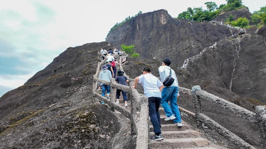 “不登天游,武夷白游!”第一天下午,團隊向“武夷第一險峰”天游峰進發(fā),挑戰(zhàn)自我。
