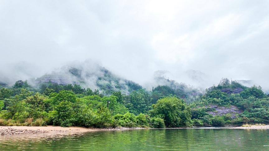 次日清晨,我們乘坐了被譽為“中國最美漂流”的九曲溪竹筏漂流。